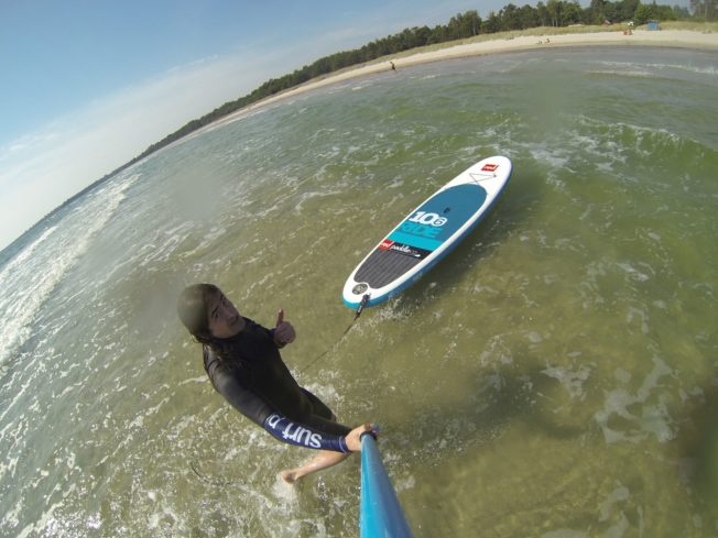 Pour pouvoir glisser, j’avais prévu un bagage supplémentaire contenant une planche de stand-up paddle gonflable. Ce type de planche permet de transporter son SUP partout sans avoir à payer de supplément planche de surf dans l’avion. Mon SUP Red PaddleCo 10’6 m’a permis de me mettre à l’eau sur des lacs et sur des plages paradisiaques sur l’île de Gotland.