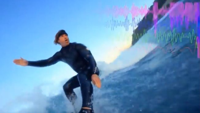 Que se passe-t-il en surf maintenant ? En début de vague, on voit toutes les ondes en hyperactivité : le dispositif enregistre aussi bien les signaux cérébraux que musculaires, ce qui vient perturber l’analyse (ce dispositif qui sera destiné au grand public n’a évidemment pas la précision d’un EEG). Mais en fin de vague, on observe clairement une augmentation de l’intensité des ondes alpha et theta qui sont les ondes de l’apaisement et de la relaxation. Le phénomène serait encore plus marqué en fin de session.