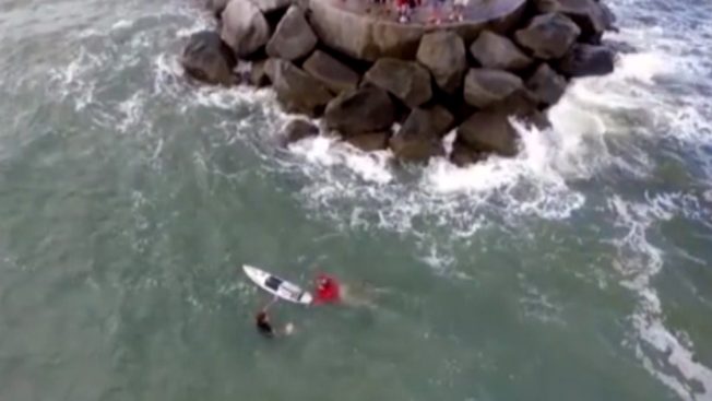 Il n’a pas hésité à lui donner sa planche de surf pour lui permettre de flotter et de regagner la plage, pendant qu’il nageait à ses côtés.